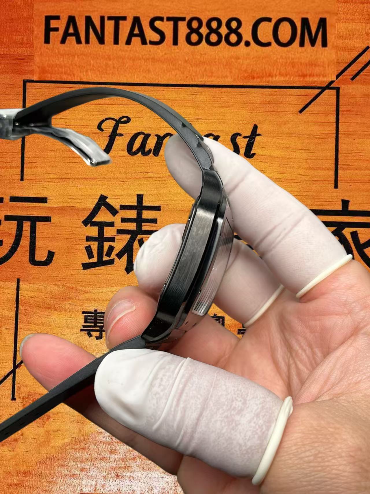 錶帶部分,隨附的橡膠錶帶質地柔軟,佩戴舒適。錶扣為摺疊式設計,做工精細,其上刻字清晰深刻。錶帶更設有快拆裝置,按壓特定按鈕即可輕鬆卸下,更換過程非常便捷。底蓋上的刻字亦對照原版,刻工深邃。