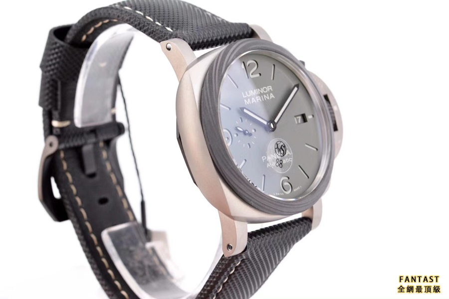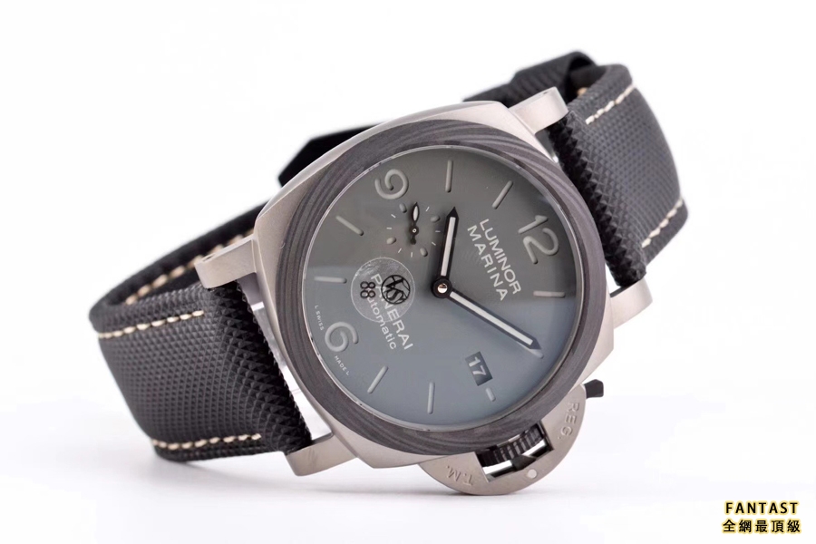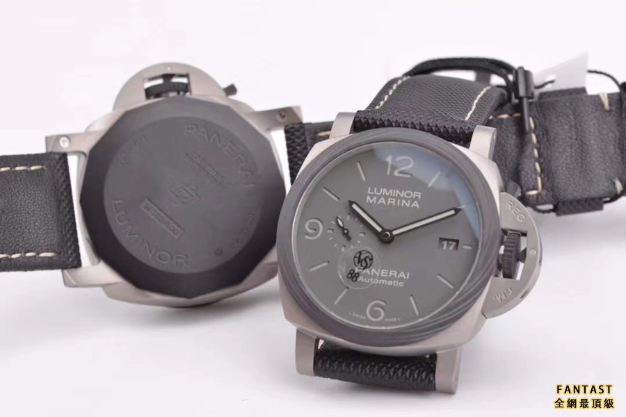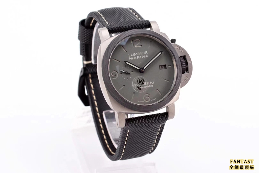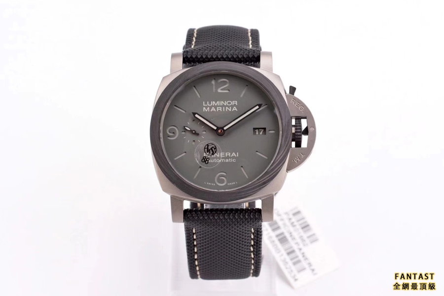 VS新品:沛吶海Luminor Marina 44MM “煙灰”1662 噴砂鈦殼工業感十足,護僑把 圈口 把頭深色碳纖維 色調層次高級上檔次。