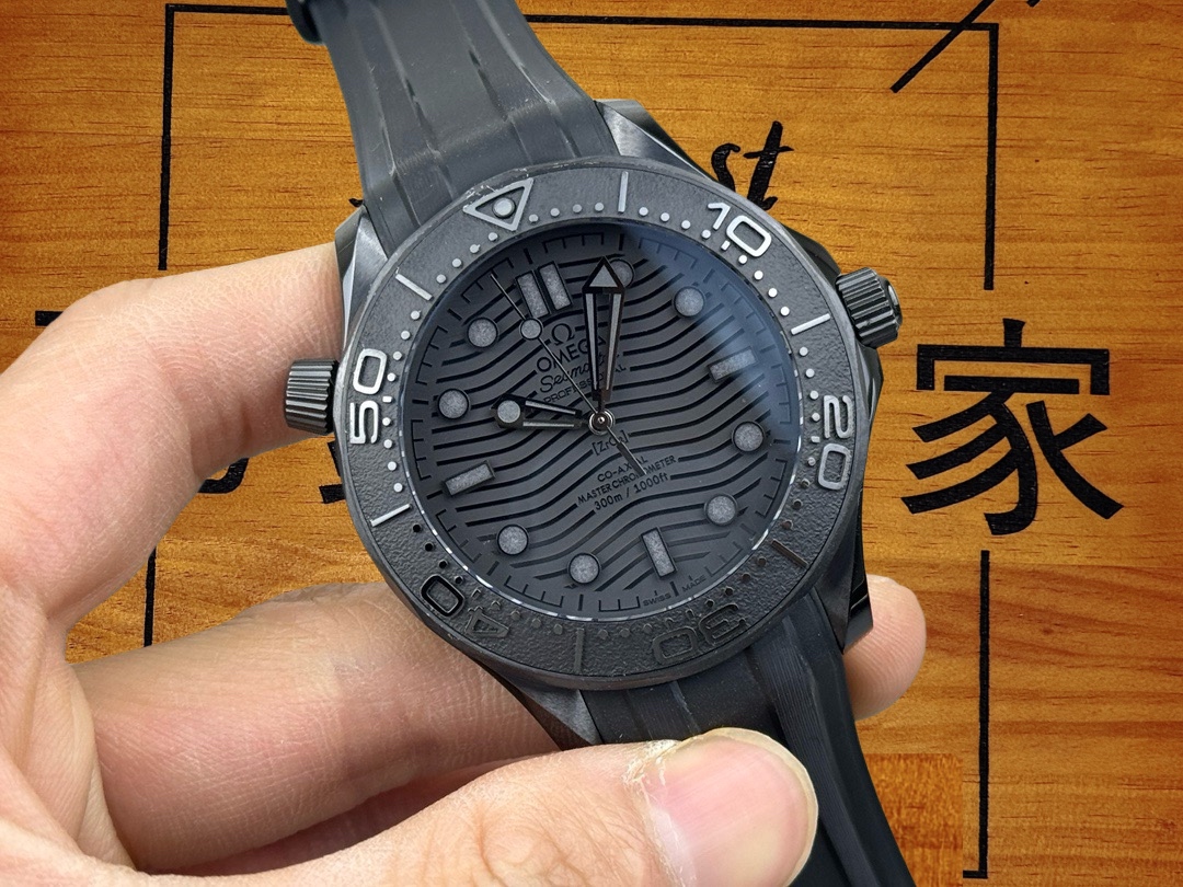 說實話,第一次拿到這款VS廠出品的歐米茄海馬300“墨黑武士”(型號210.92.44.20.01.003),確實被它的整體質感驚艷到了。作為2024年復刻表市場的重磅新品,它採用了全球領先的黑色氧化鋯陶瓷(化學式1ZrO₂)作為主體材質——這種材料通常應用於航天領域,硬度高達Hv1200,耐磨性相比普通不鏽鋼提升了7倍以上,這也是為什麼整只表拿在手裡會有一種溫潤而又沈甸甸的高級感。