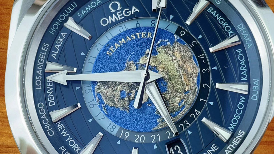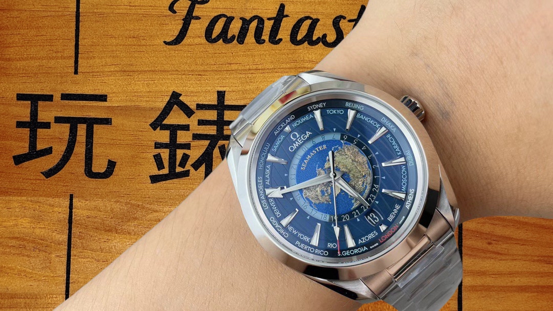 歐米茄海馬Aqua Terra系列於2019年推出這款世界時腕錶,其名稱“Aqua Terra”寓意“水與陸地”,表明這款腕錶既適合日常場合佩戴,也能應對水上活動。VS廠通過精湛的復刻工藝,讓更多錶友能夠體驗這款融合世界時間與精美工藝的傑作。