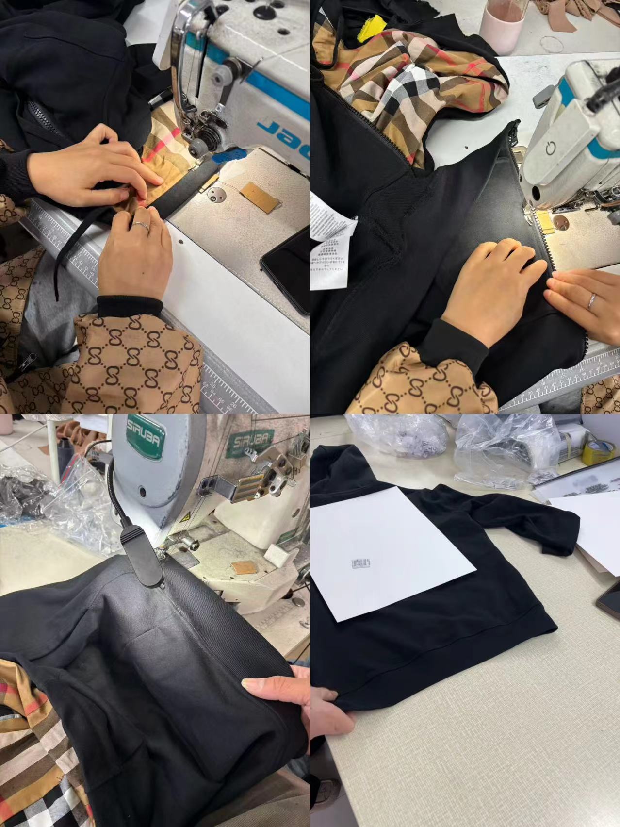 品牌對工藝的堅持還體現在輔料選擇上。每件衛衣的標籤由師傅手工縫製,確保位置精準與間距一致。三標齊全與定制輔料,進一步保證產品真實性與整體性。下擺與袖口以雙針車線加固,提升耐用性與細節質感。