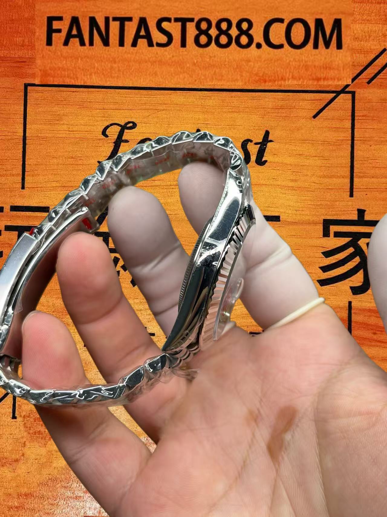 除了核心的正品四件套,其錶殼、錶圈與錶帶的製作也毫不馬虎,每一處皆經過用心打造。原裝錶圈為十八K金材質,因其配件成本較高,為控制預算,此定制腕錶採用九零四L不鏽鋼錶圈。若預算充足,選用原裝錶圈自然更為完美。不鏽鋼錶圈經過CNC工藝開模,精密加工與高拋光處理後,表面極為光滑,光澤璀璨度可與原裝媲美,長期佩戴亦無需擔心氧化褪色,質感無限接近原裝。