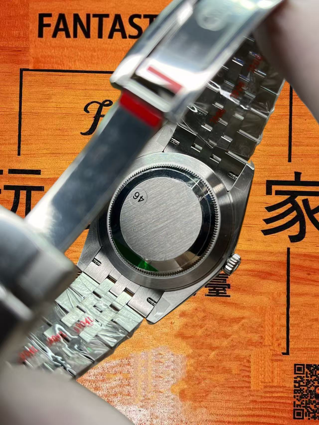 最後關注機芯部分。此腕錶搭載丹東3235型機芯,此機芯歷經市場多年驗證,穩定性出眾。其功能嚴格對標勞力士原廠3235機芯,具備快調與瞬跳日曆、秒針暫停等功能,日常佩戴誤差可控制在合理區間內,完全滿足日常通勤需求,無需擔憂卡頓或偷停問題,性價比遠超普通機芯。