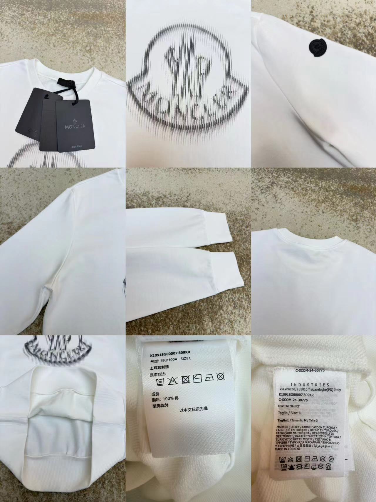 設計上,衛衣以圓領剪裁與印花技術為重點,呼應Moncler對細節的堅持。圓領設計經典百搭,適合多種臉型與頸部線條。印花部分運用數碼直噴技術,透過高精度噴墨設備將圖案直接呈現於面料表面,色彩還原度高且附著力強,水洗後不易褪色或開裂。這種工藝使印花與面料融合度更佳,不會產生生硬的膠感,兼顧美觀與穿著舒適度。數碼直噴技術無需製版,適合小批量生產,且圖案細膩度與色彩飽和度均優於傳統印花方式。