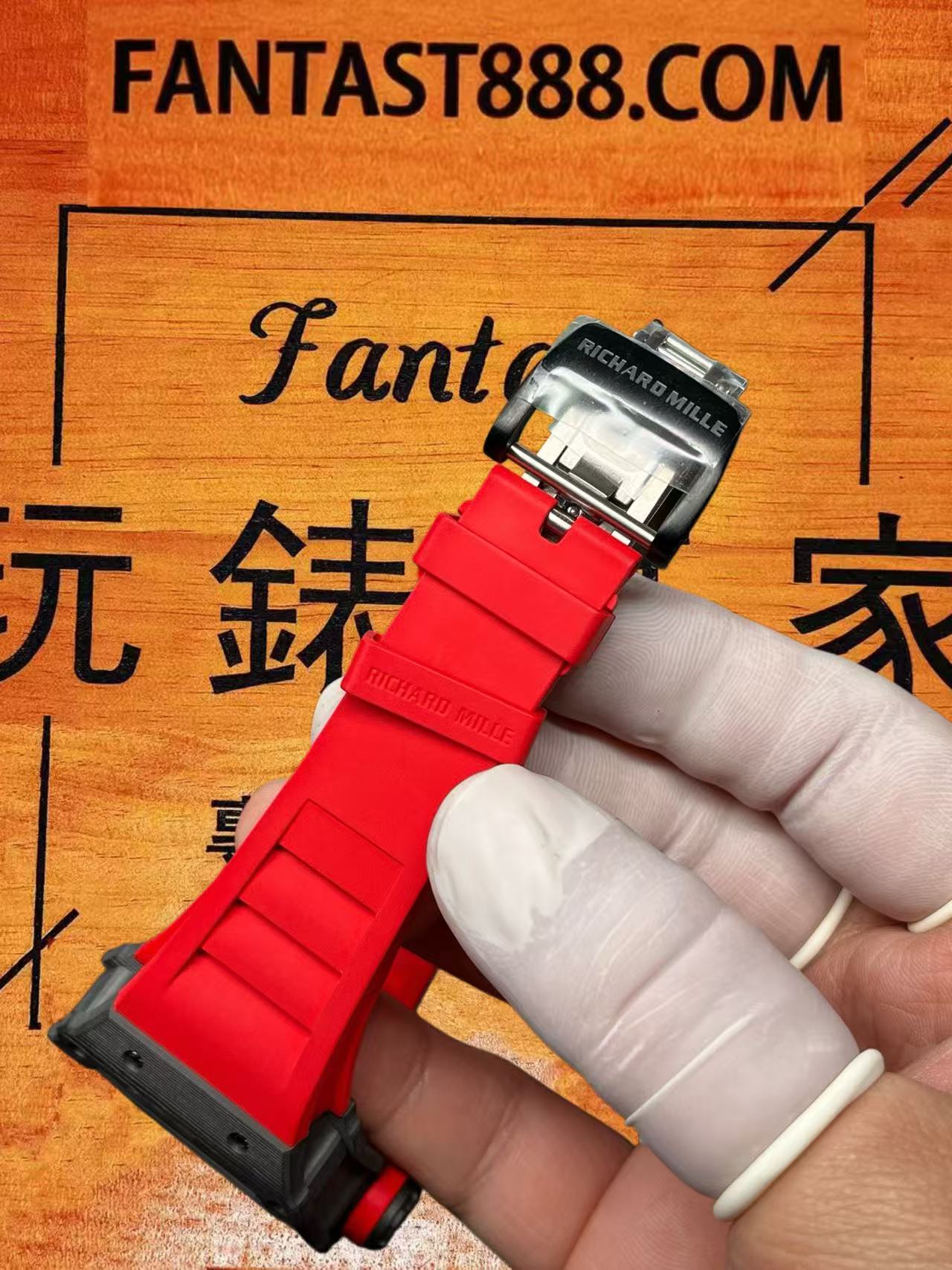 錶鏡前後均配備雙面防反射鍍膜的藍寶石玻璃,通透耐刮,即使在強光下也能有效抑制反光與眩光,讀時清晰且抗劃痕。整錶的裝配工藝彰顯高端定制的嚴謹態度,採用高標準作業,即使在十倍放大鏡下檢視,依然保持無塵、無雜質、無多餘膠痕的狀態,每一處部件連接都精準流暢,確保每枚腕錶均能達到官方組裝標準。佩戴體驗兼顧實用與舒適,錶帶採用進口橡膠材質,紅色錶帶與錶圈配色呼應,形成統一視覺。膠帶貼合手腕,佩戴時不悶汗也不硌手,適合日常通勤與運動等多種場合搭配。錶扣為鈦金屬材質,經CNC工藝精密加工,無論開合手感還是整體質感,皆與原裝極度接近,固定牢靠不易鬆動。