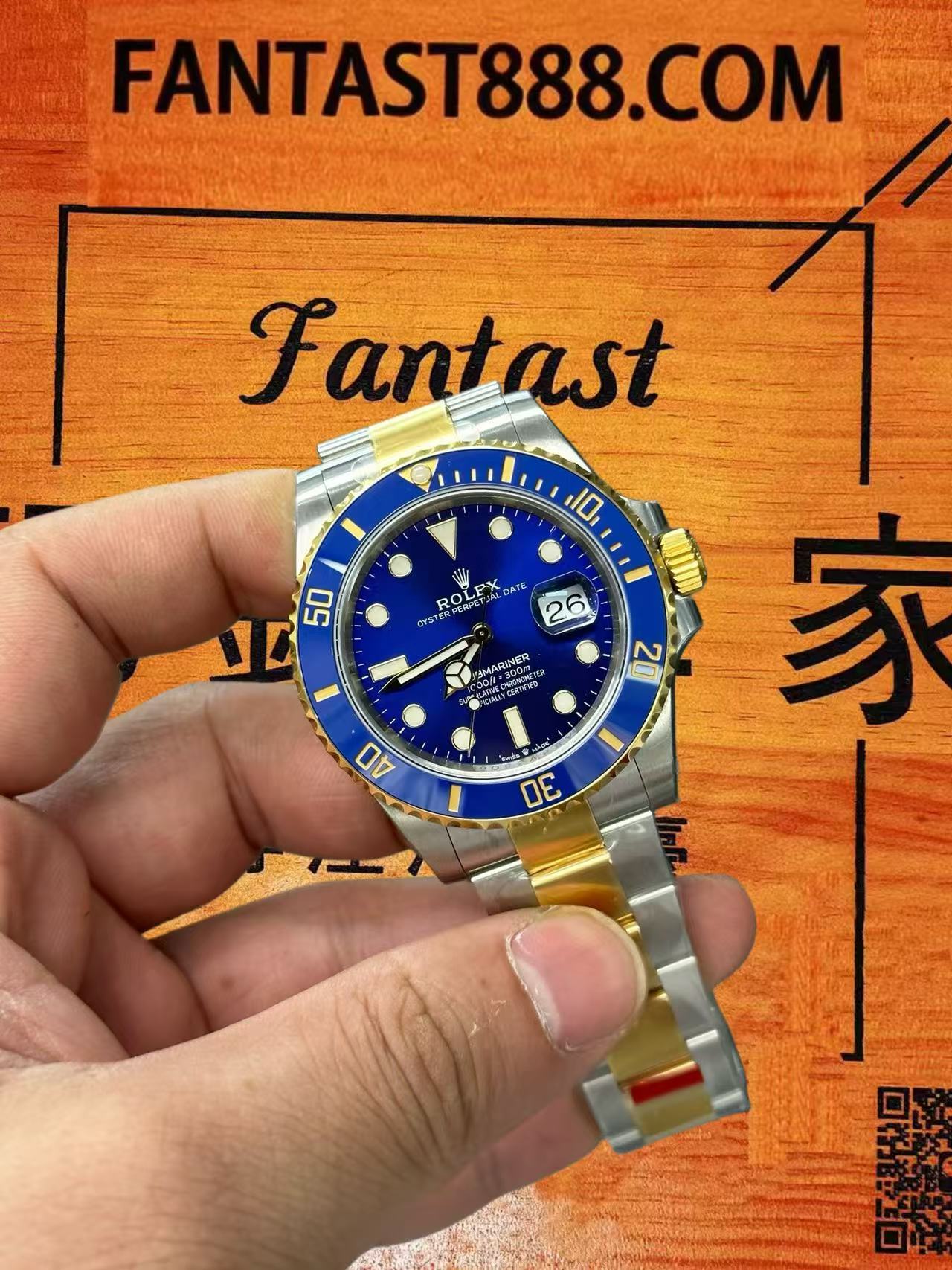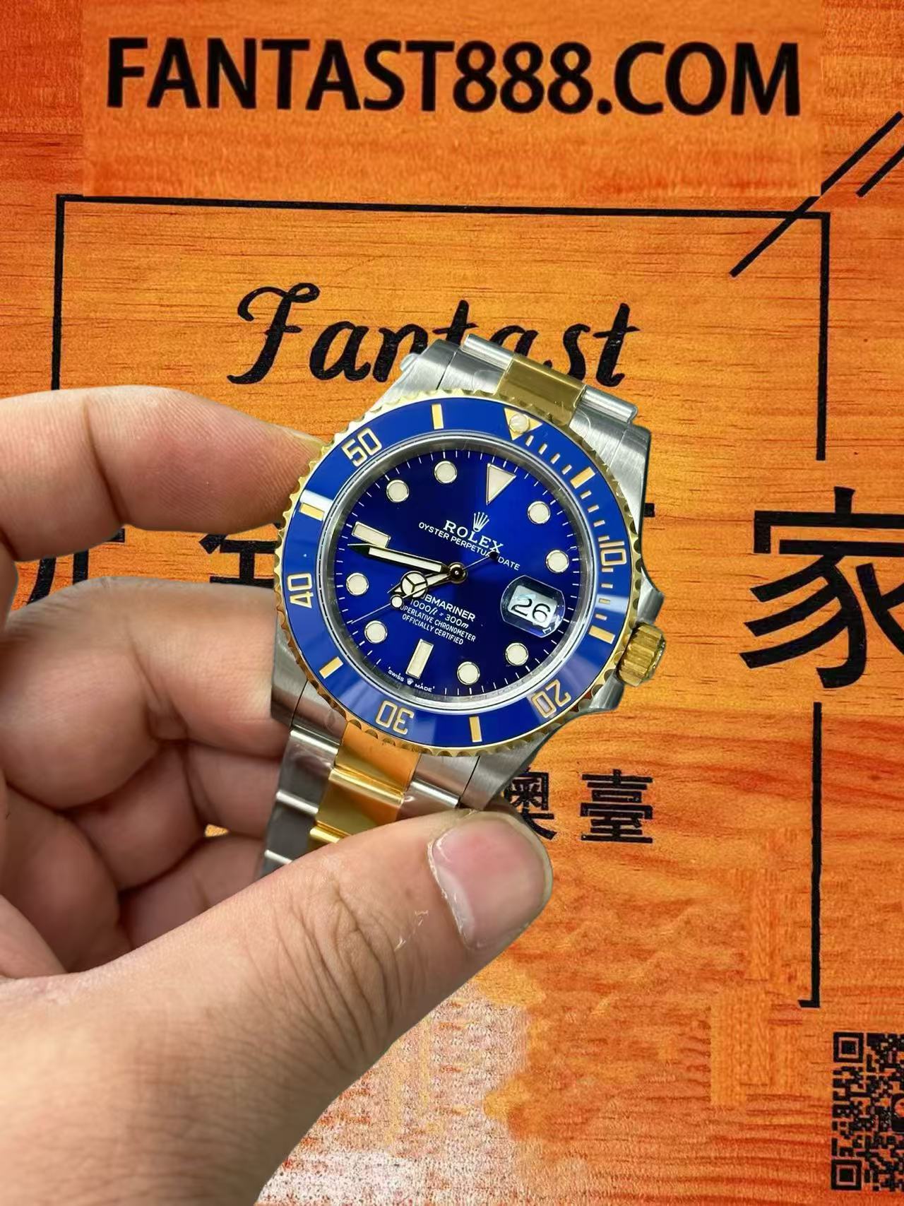 各位觀眾大家好,我是FANTAST。本期評測要為各位介紹的是VS廠推出的新款間金藍水鬼,此為41mm的最新配重版本,亦即V2最新版。隨著配重技術日漸成熟,如今這類金色或間金款式的重量已能達到與原版相若的水準。以這款間金藍水鬼為例,其原版重量約為176克,而VS廠版本經實際測量,同樣可達到176克,與原版數據一致。
