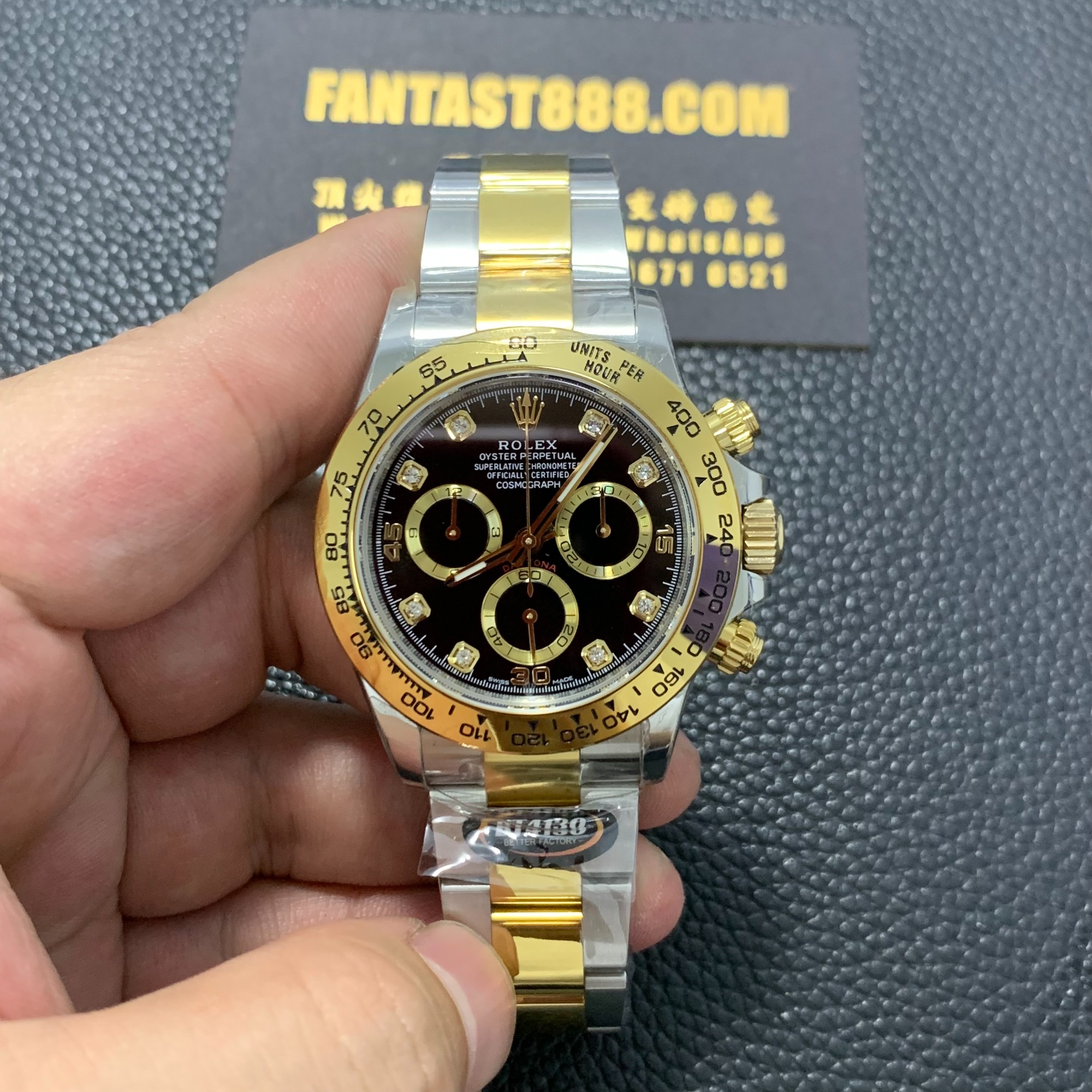"BT Factory 116503 Gold Diamond Nail Cloud Black Face Ditona Watch, Equipped with 4130 Movement"