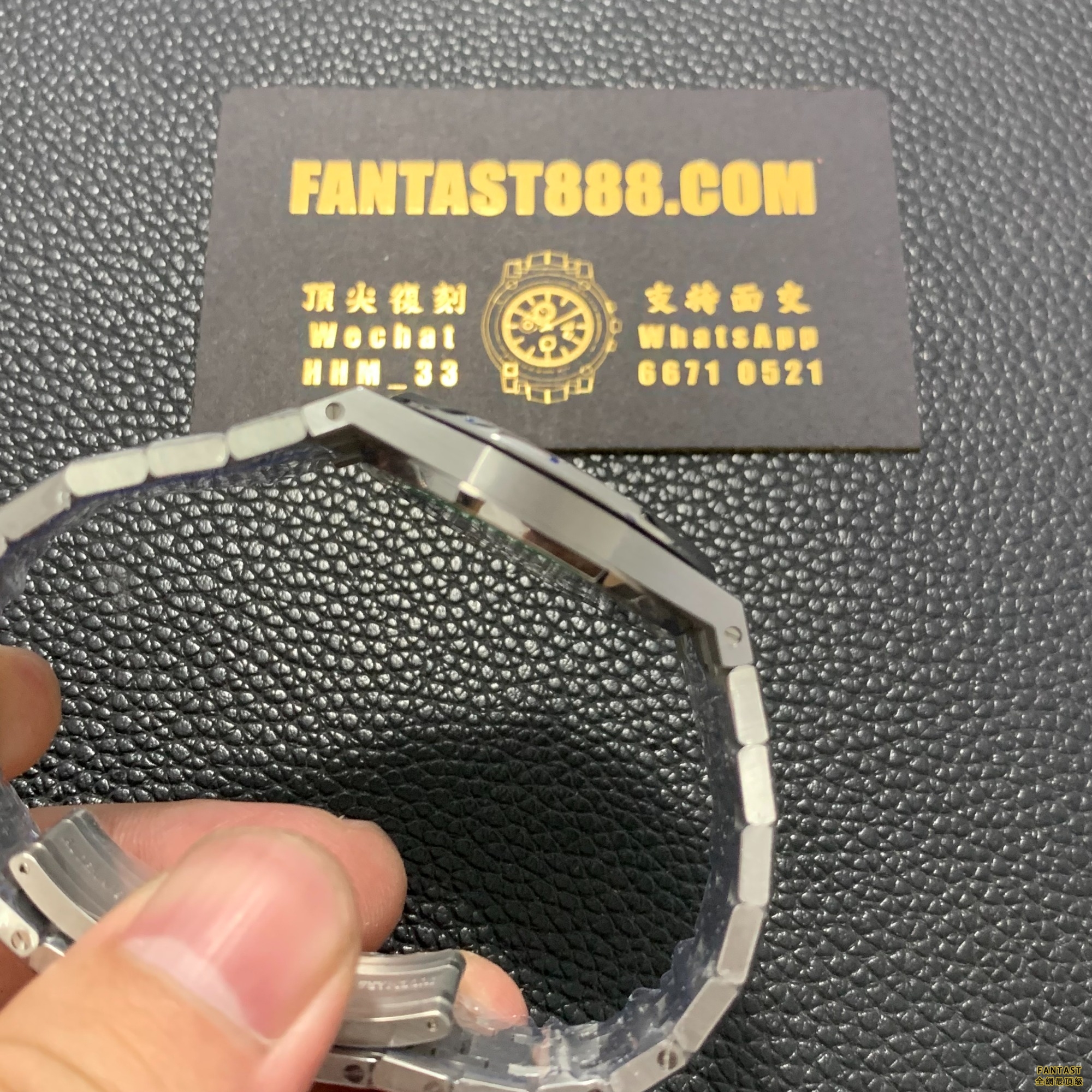 首先,讓我們來看看這款手錶的外觀。這款手錶的外觀設計與原版皇家橡樹系列非常相似,配備了一個黑色錶盤和精細的鉑金條紋,使得整個手錶顯得格外典雅。此外,手錶的直徑為41mm,非常適合男性佩戴。手錶的鏡面采用藍寶石水晶鏡面,具有很高的抗刮傷性能。手錶的表殼和錶鏈都采用316L不銹鋼材質,非常堅固耐用。