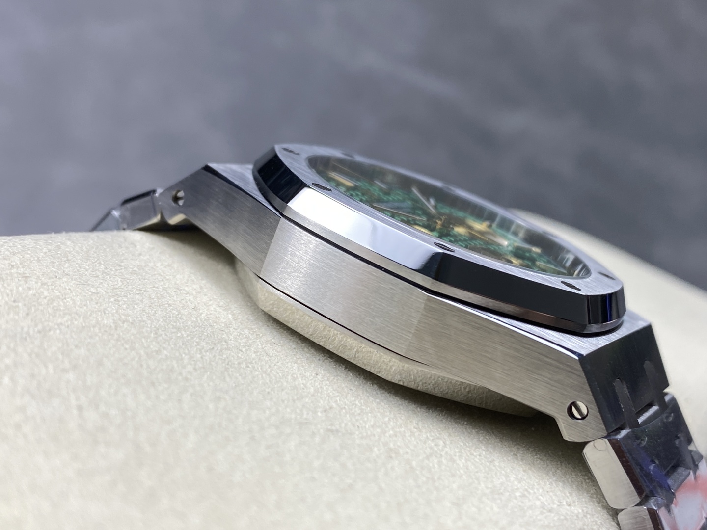 BF廠精益求精,完美復刻愛彼皇家橡樹系列的每一處細節,包括標誌性的八角形錶圈與經典計時功能,將奢華與實用性結合得淋漓盡致。
