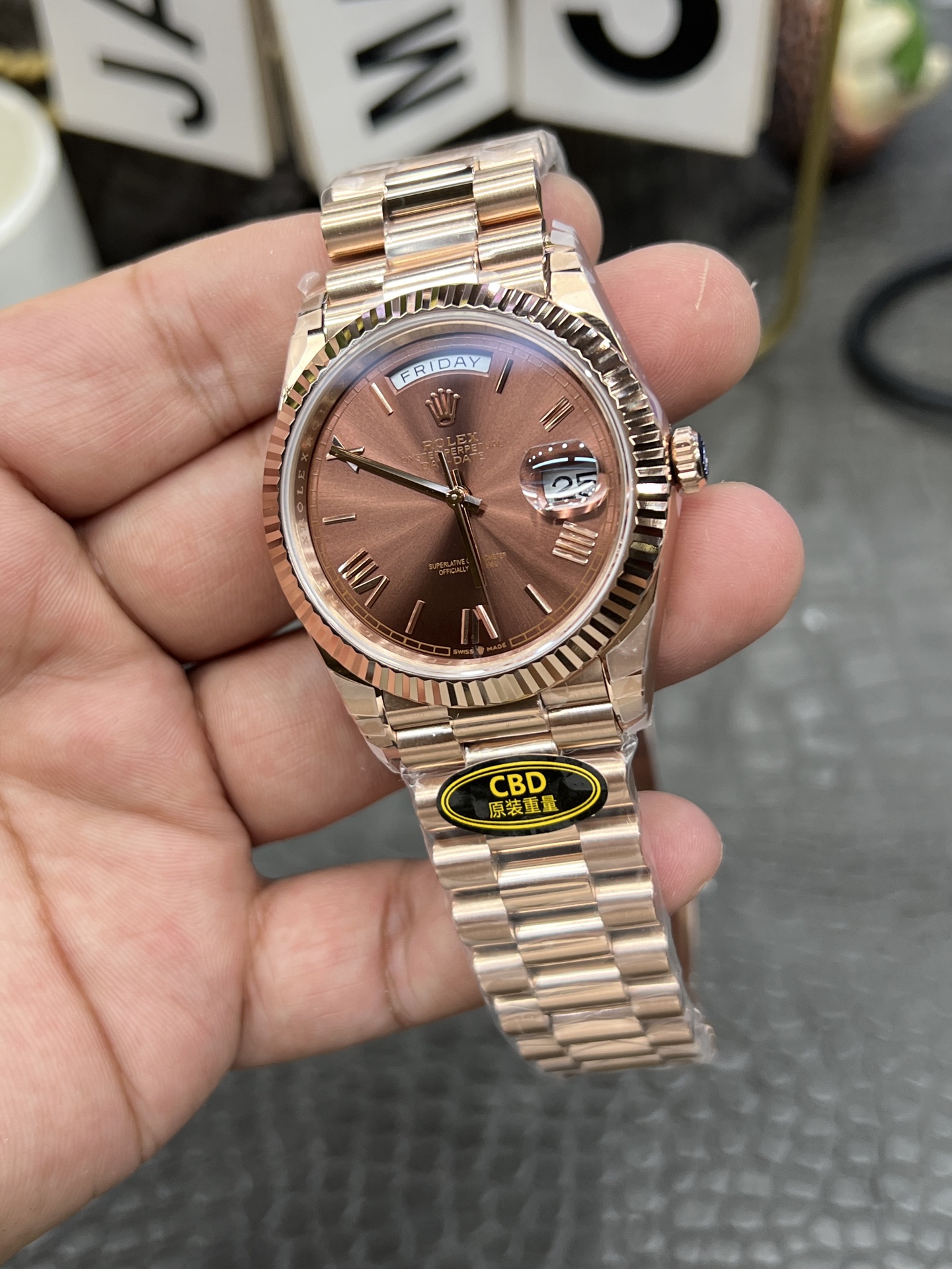 頂級復刻勞力士星期日型40mm玫瑰金咖啡面,海鷗3255自動機芯(70小時動儲),40mm表殼採用PVD玫瑰金鍍層+咖啡色鍍膜工藝,216g超重配重模擬原版佩戴體驗。支持真品驗證碼查詢,點擊查看鍍層細節!