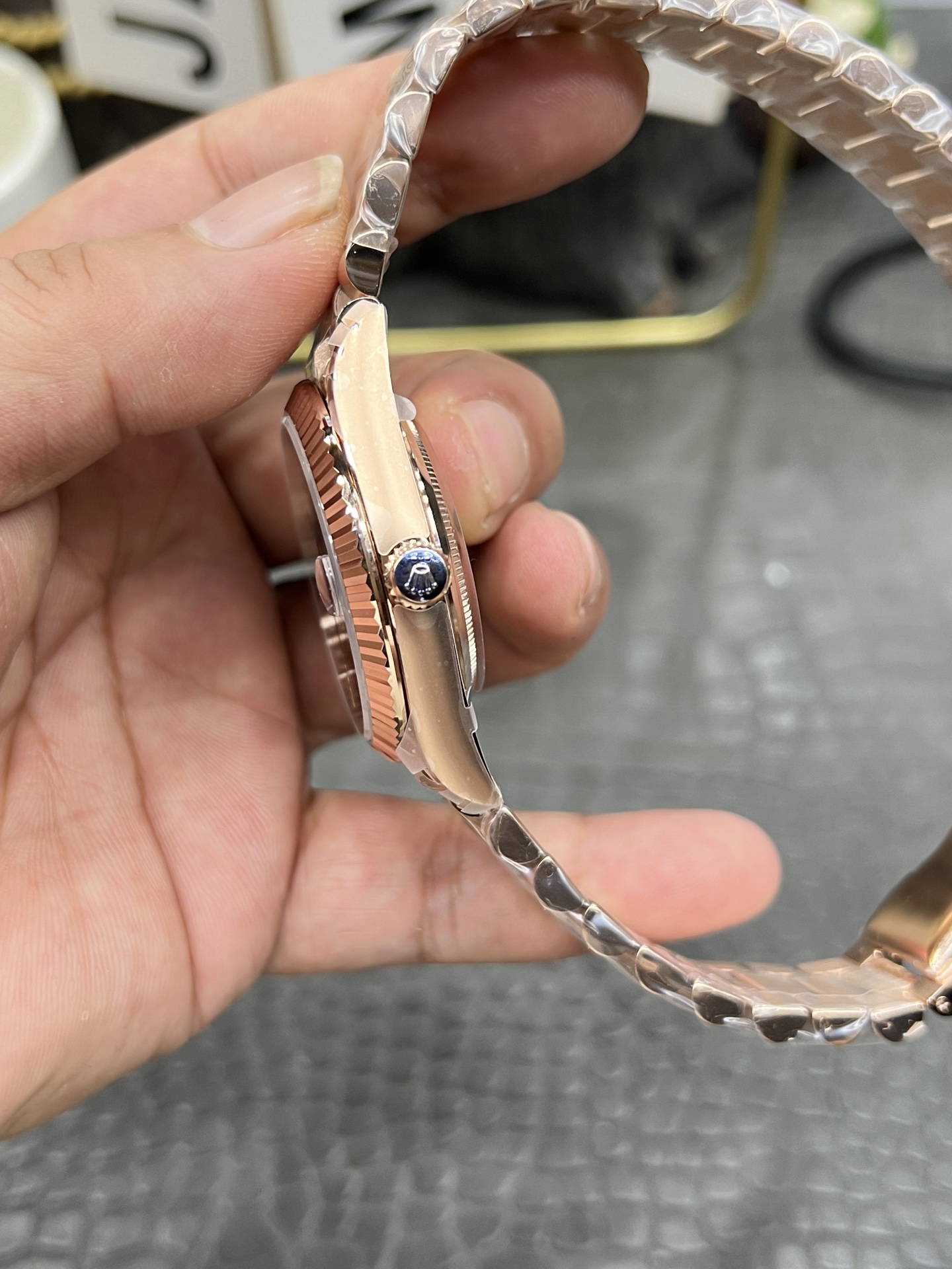 - 玫瑰金表殼採用PVD真空鍍層技術,色澤與原版誤差±0.5%