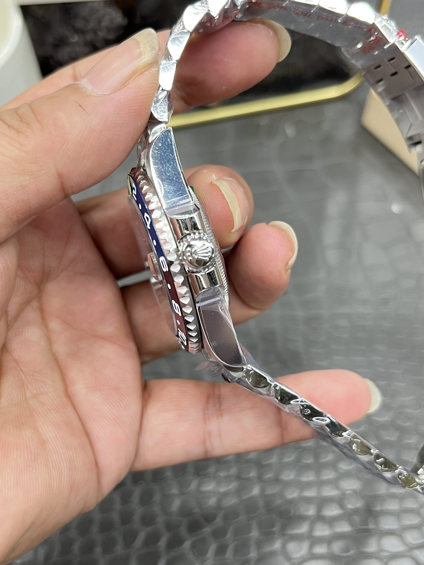 頂級復刻勞力士格林尼治V3藍紫圈國米40mm,搭載上海3285自動機芯(70小時動儲),40mm藍紫漸變Cerachrom陶瓷圈口,獨家仿古鍍層工藝,表殼採用904L精鋼,支持真品驗證碼查詢!