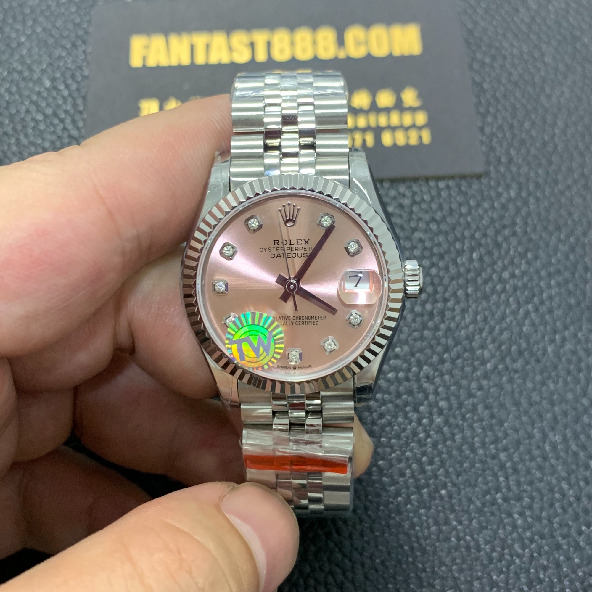 TW廠高仿劳力士日志型系列116234-63600 粉盤 鑲10顆鑽石腕錶